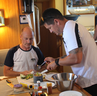 During the provisioning, DPA Kat managed to get us a fabulous turkey roast and all the trimmings from the British store in Lanzarote. For starters we took a large tuna steak out of the freezer on Christmas eve and Luke then prepared Tuna Tartare as a starter. Both courses were awesome and, as is traditional, we didn't get to the Christmas pudding (Does anyone?)